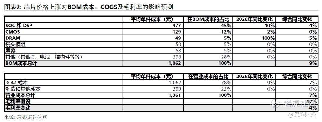 瑞银证券UBS 在2月6日发布的影石创新的研究报告中也指出,受存储芯片供给短缺、价格上涨的影响,预计影石创新2026年产品成本上涨约6%,毛利率可能下滑4个百分点。