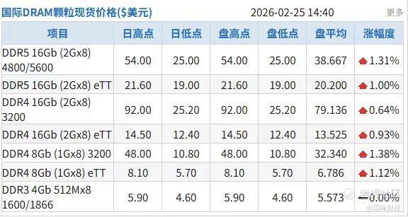 2026年开年,全球DRAM存储芯片开启了新一轮涨价周期。集邦咨询2026年2月发布的数据显示,近三个月存储芯片现货价格累计涨幅已超300%。