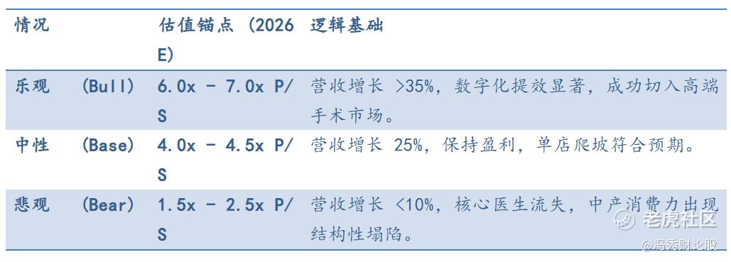 重要性:医疗服务是典型的“重资产+慢周转”。如果增长率低于20%,市场会将其视为传统的“诊所股”而非“成长股”,估值倍数会从4xP/S直接下修至1.5x-2x。