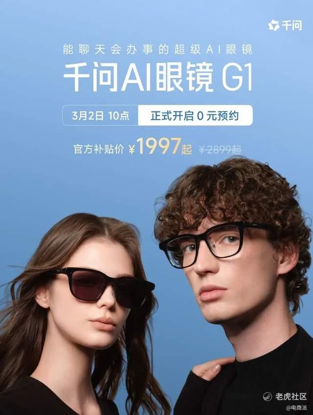 同一天,千问首款AI硬件——“千问AI眼镜”发布,开启线上线下全渠道“0元预约”。G1系列官方标价2899元,叠加国补及其他优惠券,综合到手价可至1997元。千问方面表示,该产品将于3月8日在中国市场现货发售,并将在年内登陆全球市场。