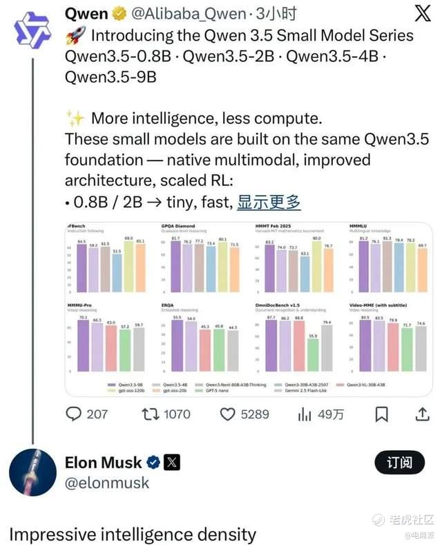 最近,阿里低调开源了4款Qwen3.5系列小模型,却没想到,惊动了马斯克,他在X上评价道,“智能水平令人印象深刻”。