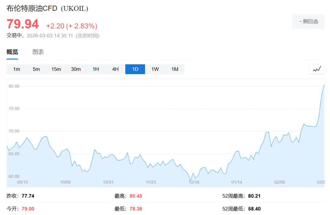 再加上霍尔木兹海峡现在已经是实质性封锁的状态,国际油价一直在飙,布伦特原油已经突破80美元/桶了。要知道,年初还在60美元左右的水平。