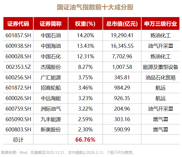 这只基金跟踪的是国证油气指数,基本覆盖了油气行业的全产业链,其中“三桶油”的占比接近40%。大家可以看看这个指数的前十大成分股,会员朋友们可能会看到一些熟悉的面孔哈。