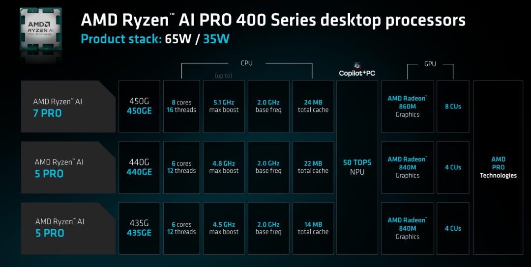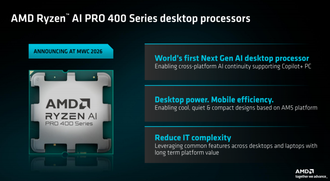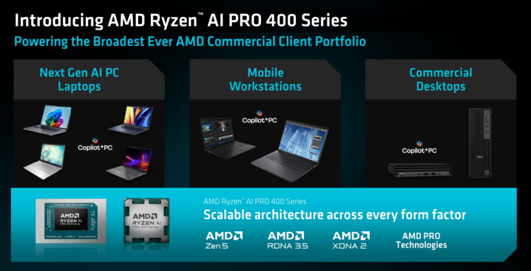 ◎ 锐龙AI PRO 400系列同步覆盖移动与桌面两大商用场景,构建统一企业IT生态;