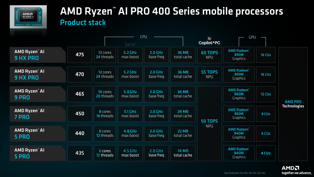 ● 锐龙AI PRO 400系列移动处理器