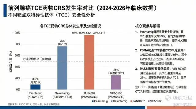已有数据显示,Pasri的CRS发生率约9%(均为1级)且无ICANS和DLT,不仅显著低于JANX007的96%,甚至与双端遮蔽设计VIR‑5500的25–28%CRS发生率相比亦具优势。另外Pasri的≥3级TRAE发生率在4–5%左右,远低于多款已上市 BCMA/CD3 TCE通常的20–40%水平。