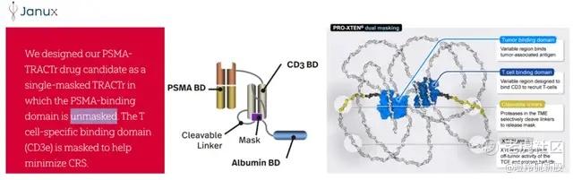 两款PSMA/CD3管线JANX007、VIR-5500都用了遮蔽技术,一个是仅遮蔽PSMA臂,另一个则是CD3臂和PSMA臂双遮蔽,国内目前数家TCE Biotech也采用了不同的遮蔽技术,其中基于空间位阻的遮蔽技术是一大热点。
