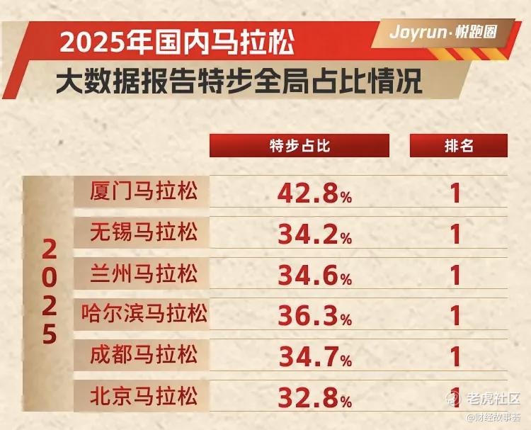 特步同样深受大众跑者偏爱——2025年国内重点马拉松赛事的全局跑者穿着率统计中,特步位居全品牌第一。