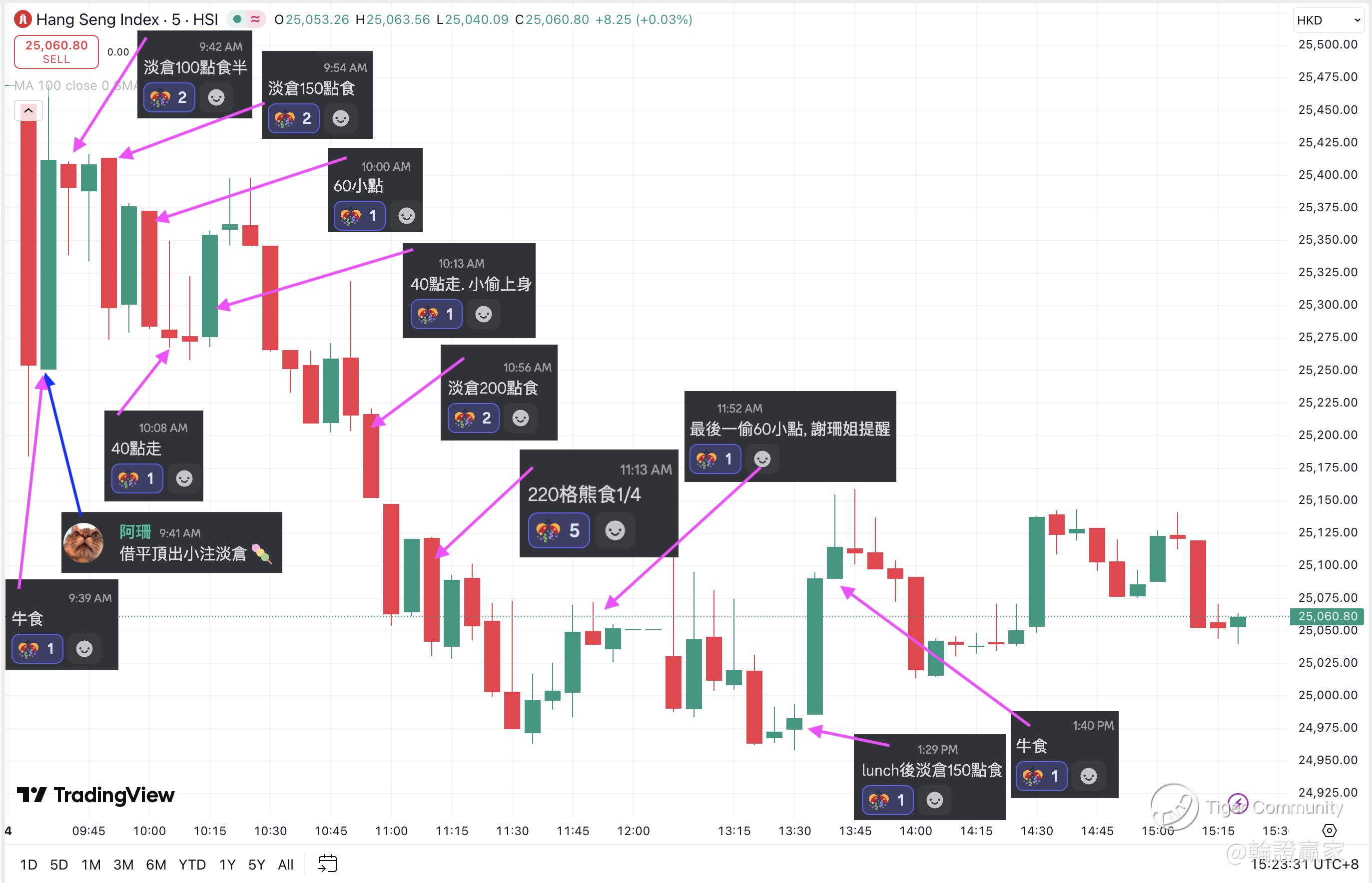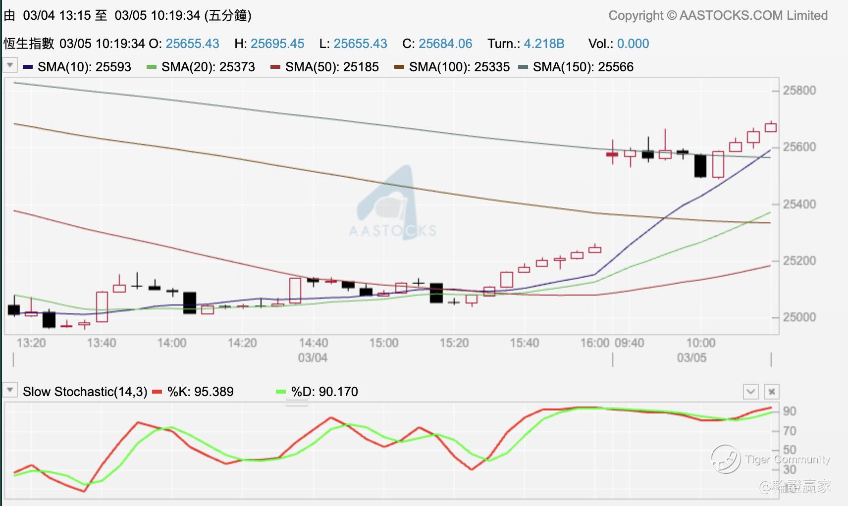 少少两难位因为又系技术分析 VS 街货,技术分析如上文所讲啦,街货睇个图都明晒啦,所以到依家9点52分见指数喺高位横行住,动作快嘅战室来回食100点楼下嘅单烛Swing「扫格仔」;慢嘅就等紧五分钟图10线上到指数前系会变成支持还是用嚟穿过。