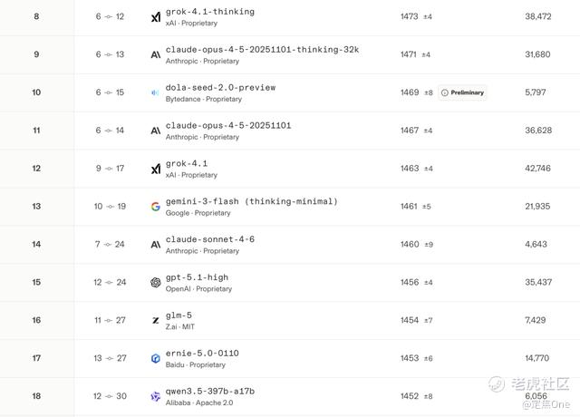 值得注意的是,阿里在去年9月发布的Qwen3-Max Preview曾一度进入该榜单的前三,与Gemini、Claude、ChatGPT等全球顶尖闭源模型比肩,但随着各家AI厂商在去年年末和今年年初更新大模型版本,Qwen从第一梯队头部持续下滑,Qwen3.5的发布并没有扭转这一势头。