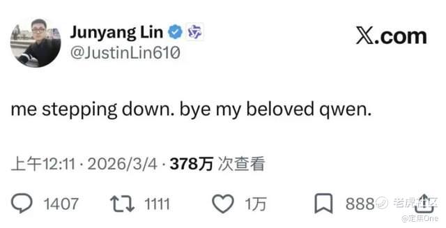 3月4日凌晨,林俊旸在社交媒体发文“me stepping down. bye my beloved qwen.(我将辞职,再见了我亲爱的千问)”推文发出后的几小时内产生了一连串连锁反应,多位千问技术团队成员陆续宣布离职,包括Qwen后训练负责人郁博文、Qwen3.5/VL/Coder核心贡献者李凯新。