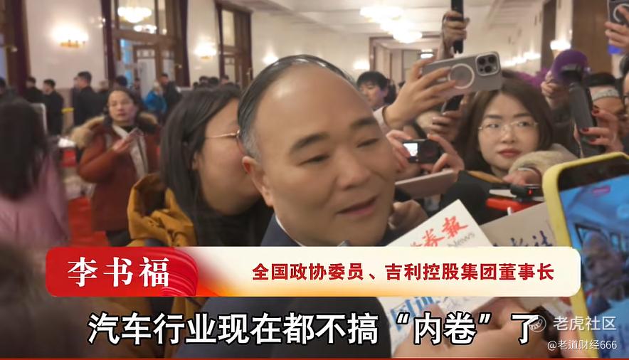 吉利控股集团董事长、全国政协委员李书福在两会现场聊到汽车行业“反内卷”时提到:“汽车反内卷反的很好,汽车行业现在都不搞内卷了,都走内涵式的可持续发展,大家都从技术品质、服务品牌和社会责任等方面努力。” $吉利汽车(00175)$