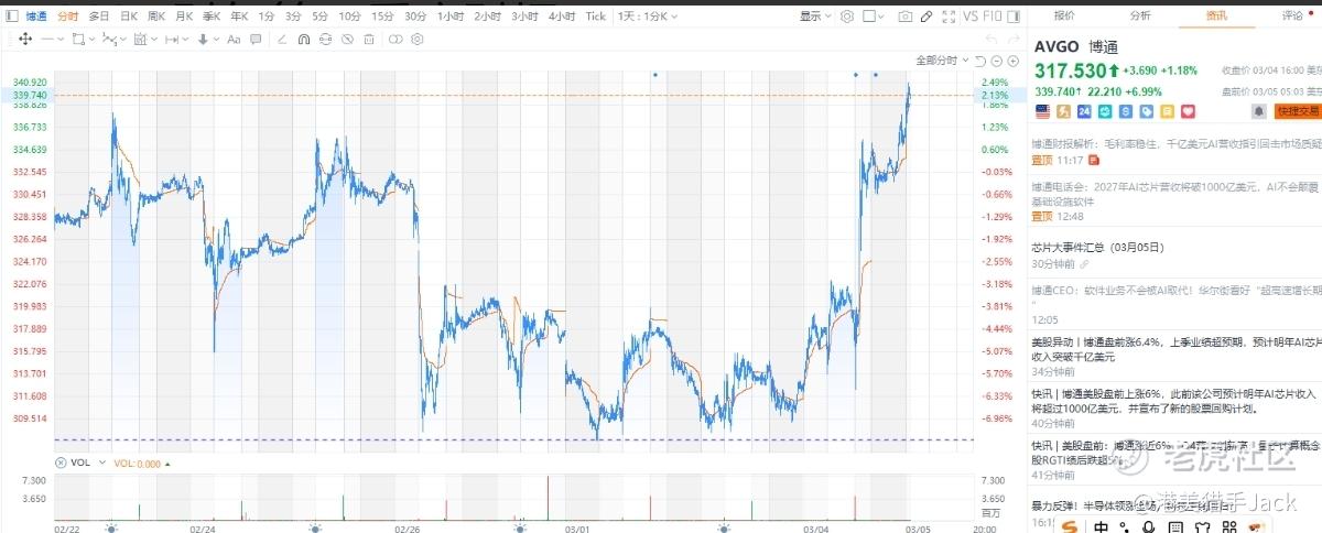 博通强烈推荐中长期持有。Q1财报证明其AI转型成功,Q2指导更预示加速增长。尽管毛利率压力和竞争加剧是隐忧,但以当前估值博通仍有不少的上行空间。$博通(AVGO)$ $英伟达(NVDA)$ $谷歌(GOOG)$