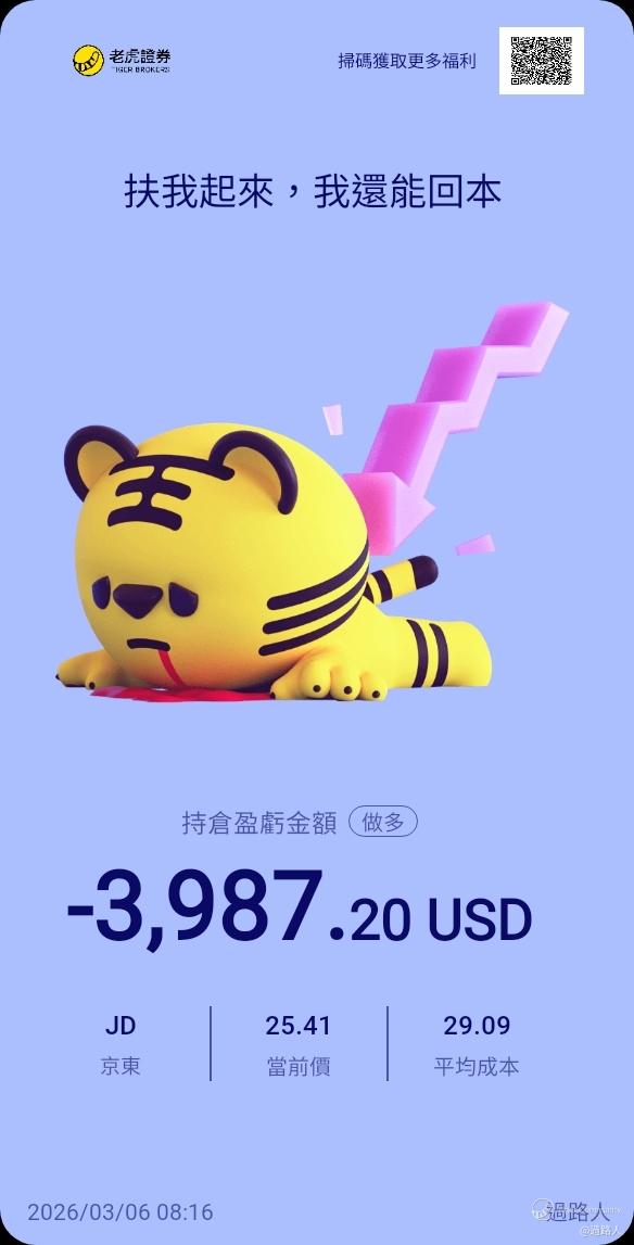 $京东(JD)$ 盘前出业绩。初初都好好地曾升到25.94。可惜硬得只有一阵。之后竟然跳左落去呀。盘中竟然倒跌24.5。天呀。中概念真的那么废吗。手持2千股jd既我差不多要跳楼了。