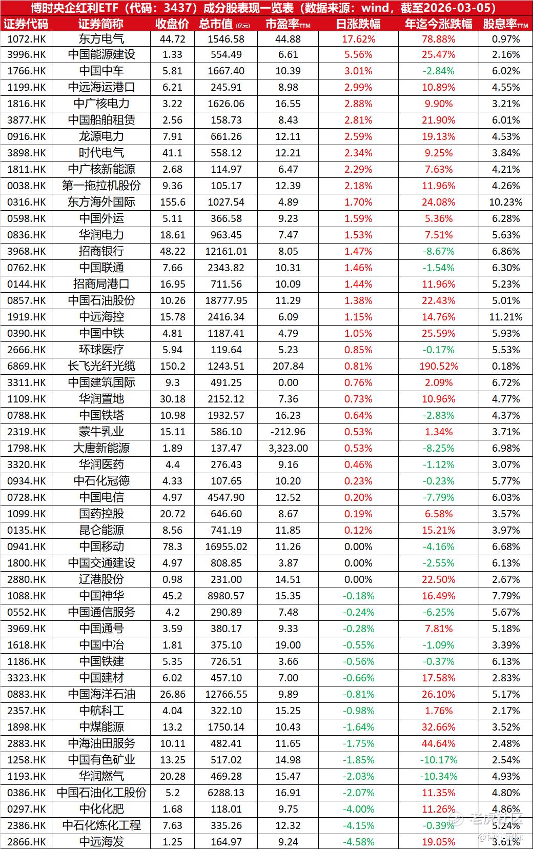 $博时央企红利(03437)$ 今年以来,国新港股通央企红利指数涨幅达+11.90%;本基金TTM股息率为6.38%