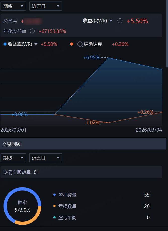 首先先和大家同步一下我最新的交易动向,我这些天并没有做太多的正股交易方面的操作,只在轻仓做空欧元;以及在买近卖远的的原油期货牛市跨期套利上有了一定的利润。所以我的交易方向目前都集中在期货账户上: