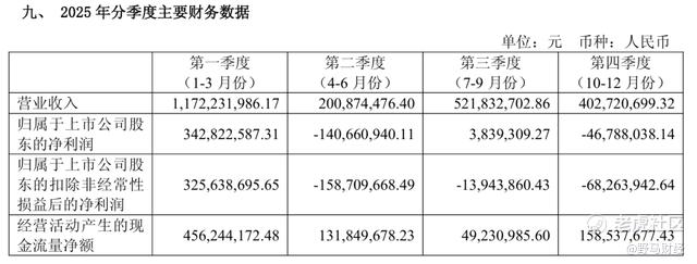 横店影视2025年Q1-Q4营收分别约11.72亿元、2.01亿元、5.22亿元、4.03亿元,归母净利润分别约3.43亿元、-1.41亿元、383.93万元、-4678.8万元。对此,横店影视方面表示,电影行业二季度、四季度普遍是淡季,尤其是二季度,4、5、6三个月也没有一个非常好的档期,因为我们电影主要靠假日档期来带动消费。