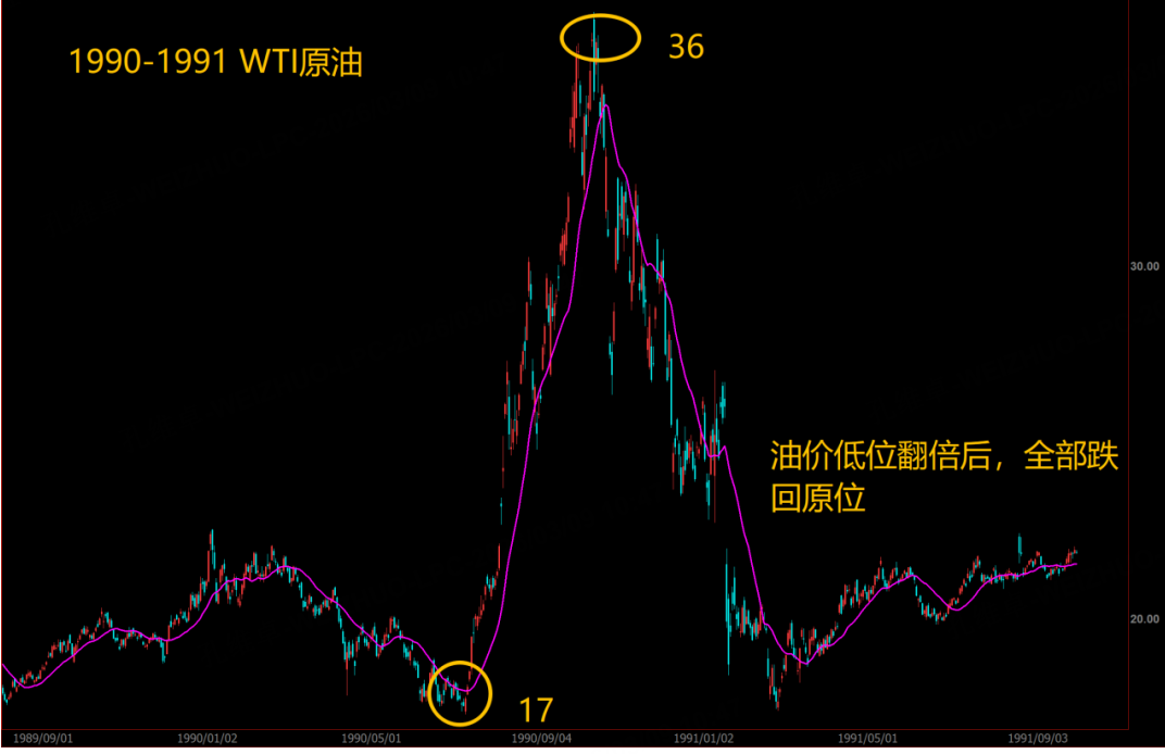 上述是市场看法,但我建议大家对该观点要用投机的态度来看待,因为封锁海峡的时间可能并不会太长久,要知道特朗普今年的关键任务是应对中期选举,而他其中一项目标就是要低油价低通胀,油价飙升可能是不远的将来就会有相应的控制措施(TACO?谈判讲和?),届时油价哪里来哪里去,这种波动对投机者是乐园,但对中长期投资者则是难以处理的波动,所以目前油价在投机氛围的作用下,破百并非难事(可能未来2-3周就见到),但绝对难以长期维持,情况就与90年的海湾战争类似(半年时间,油价从底部翻倍而后全部跌回原位),所以投资者必须认清楚当下行情的内在逻辑及节奏,以免追高失败被深套!
