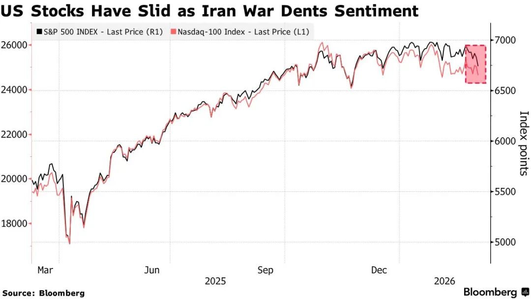 这一概率调整反映出越来越多的担忧 —— 若中东冲突持续,加上由此带来的通胀冲击,可能会挤压家庭支出、侵蚀企业利润率,并让美联储的政策路径更加复杂。周一,国际油价自 2022 年以来首次突破每桶 100 美元,推动股市和美国国债同时下跌。