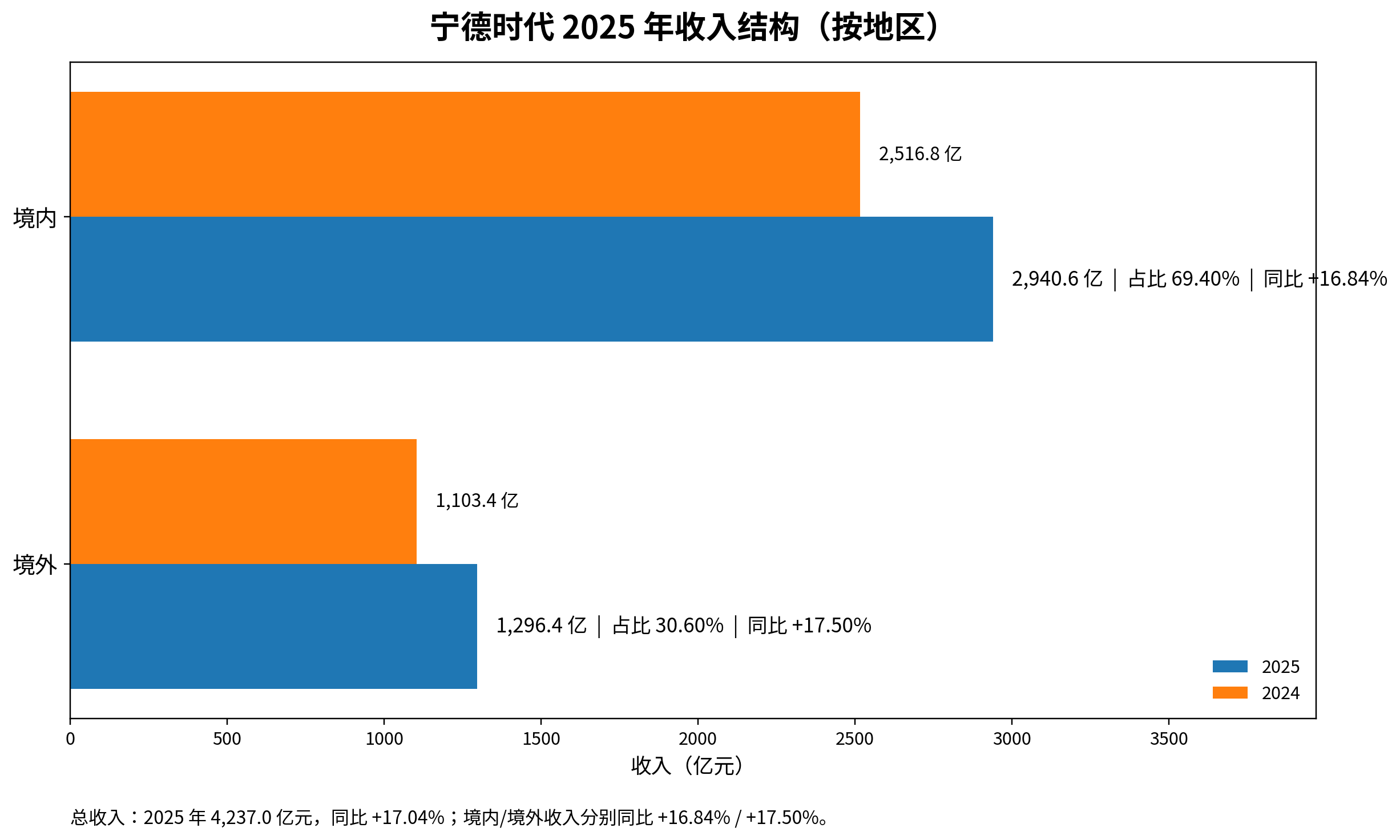 此外,市场看到的也不是一家只绑定国内新能源车周期的公司。年报显示,境外收入达到1296.41亿元,同比增长17.50%,毛利率31.44%,高于境内业务;公司2025年5月在香港完成上市,募集资金总额410亿港元,主要用于匈牙利项目建设及营运资金。换句话说,宁德时代的增长来源正在从“国内动力电池”进一步延展到“海外+储能+新场景”,这会影响市场对其估值的判断。