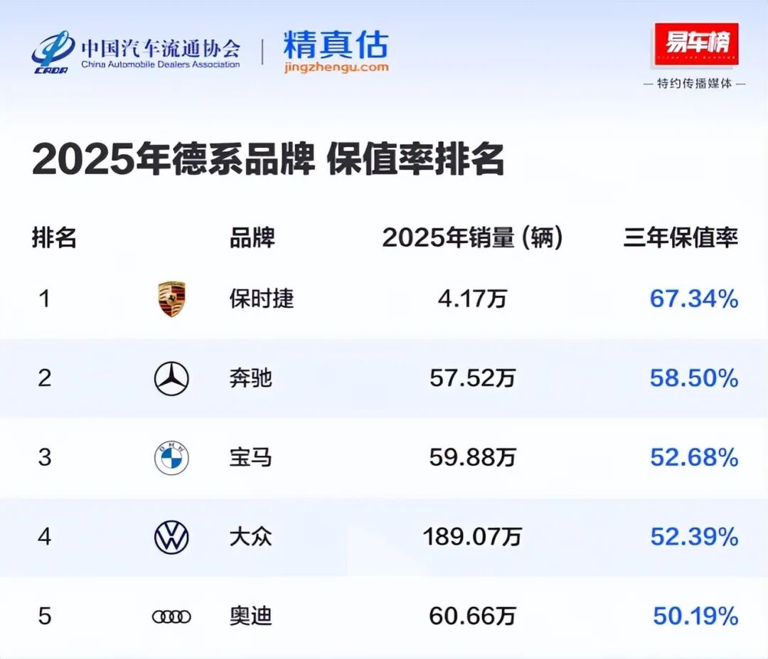 现在BBA的三年平均保值率,已经从之前的75%的峰值,跌落到了58%甚至以下,部分车型的保值率,还不及国产车。