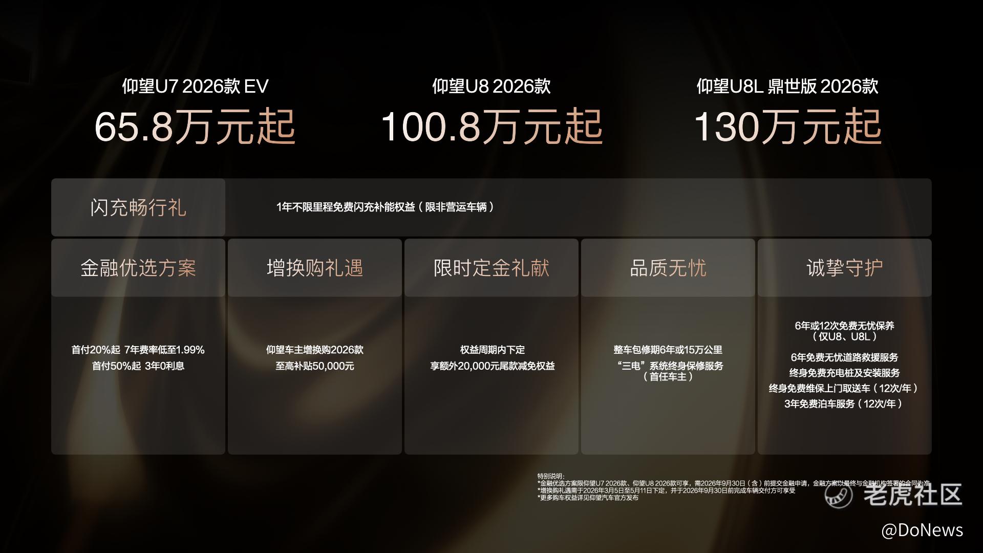 从U7的运动豪华、U8的硬派越野到U8L的行政安全,仰望2026款旗舰矩阵通过第二代刀片电池与闪充技术的赋能,正在覆盖更广泛的高端出行场景。当补能效率不再是用户出行的顾虑,极致技术所带来的,便是更加从容、自由的行车体验。