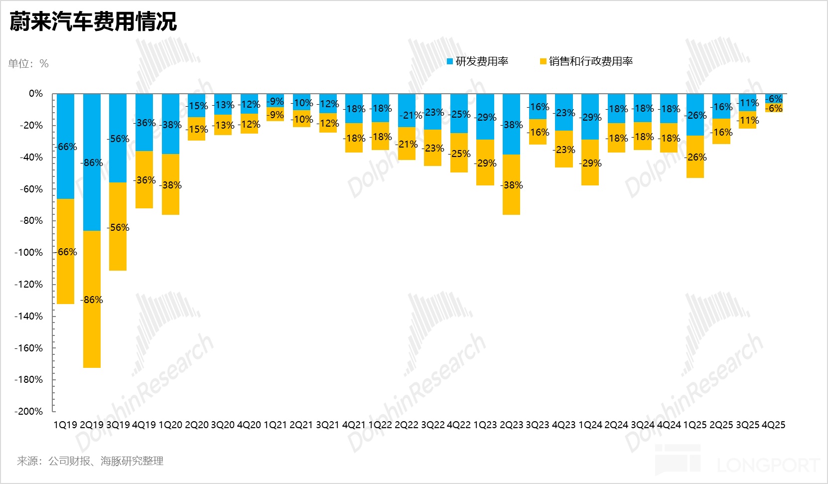而在费用方面,蔚来同样还在大幅的控制:蔚来预计 2026 年全年研发支出将与 2025 年第四季度的年化水平持平,销售及管理费用占营收的比例将降至约 10% 的水平。在销量提升、整车毛利率改善与研发及销管费用的严格管控形成合力,蔚来有望在 2026 年实现全年盈利。