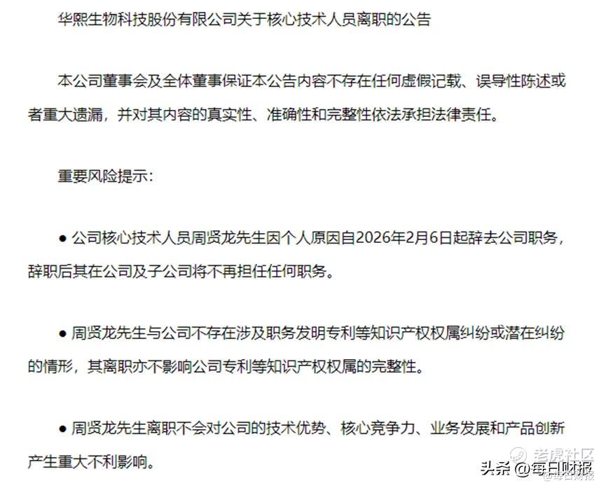技术人才的接连流失,成为华熙生物转型期不可回避的问题。2024年4月,核心技术人员马守伟、王勇志离职;2025年1月,董事、副总经理、首席科学家郭学平因达到退休年龄离任;2026年2月,核心技术人员周贤龙辞职。