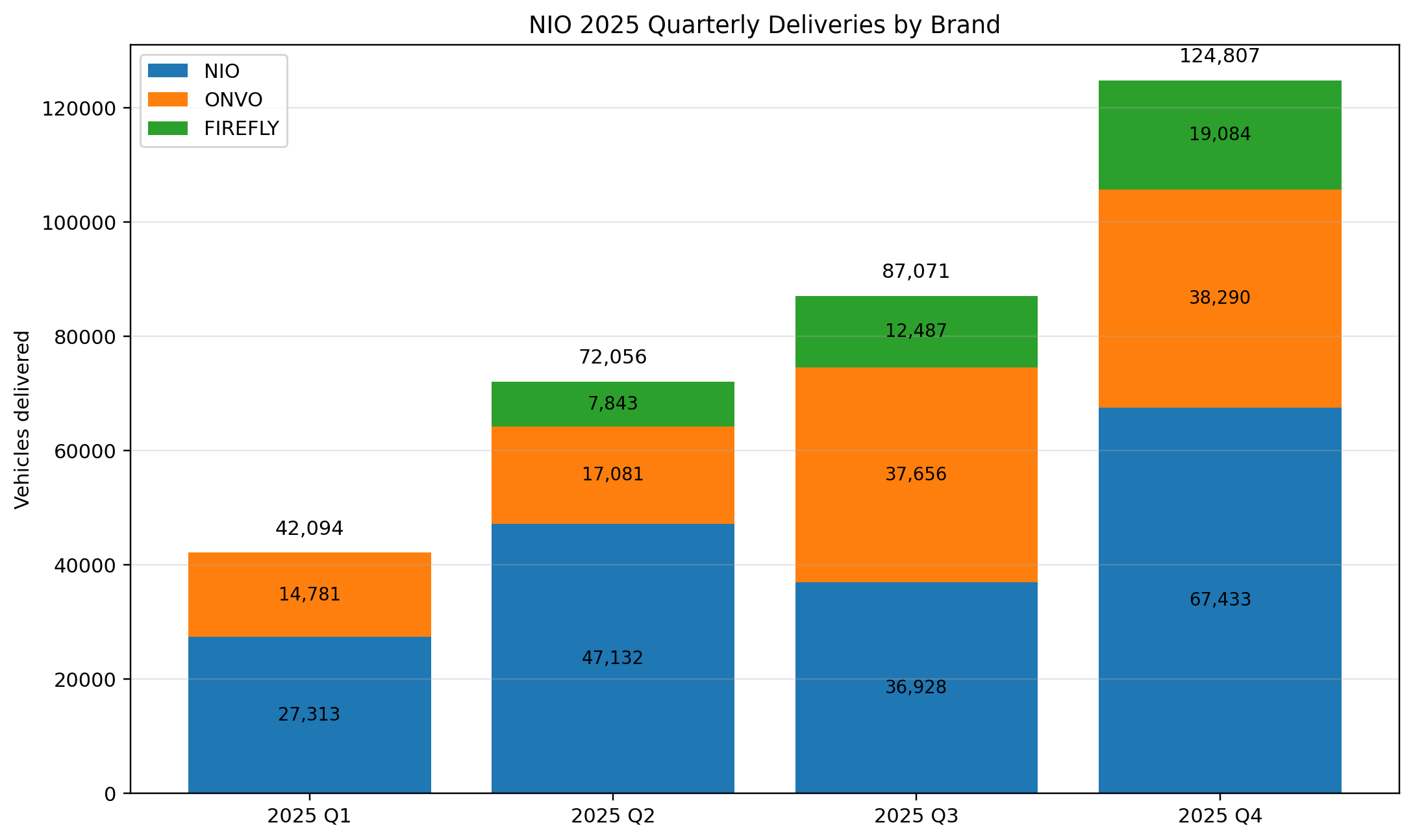 这背后还有一个很重要、但容易被忽视的细节:四季度的改善并不是靠单一品牌硬拉出来的。按公司披露,12.48万辆交付里,NIO主品牌交付6.74万辆,ONVO交付3.83万辆,FIREFLY交付1.91万辆,三个品牌都创下季度交付新高。也就是说,这次拐点并不是靠某一款爆款车短期冲量,而更像是多品牌共同放量后的结果。对市场来说,相比单一产品的偶然爆发,这种多品牌一起增长的态势,更容易让人相信拐点来自平台能力扩张,而不是短期因素扰动。