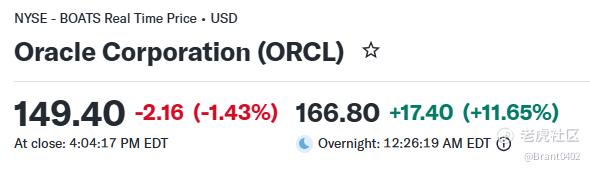 过去半年,围绕“AI软件股是否被高估”的争议持续发酵,市场甚至出现了所谓的“SaaS末日论”。在这一情绪冲击下, $甲骨文(ORCL)$ 股价从去年9月344.21美元的高点一路跌至约149美元,累计回撤超过50%。然而,随着周二盘后最新财报出炉,这种悲观叙事突然被打破。