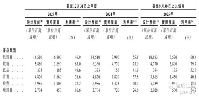 另外,公司部分产品的产能利用率仍待提升。2025年前三季度,软胶囊产能利用率为60.4%,片剂、粉剂、硬胶囊的产能利用率均低于50%。此前公司募投项目也曾出现延期情况,数字信息化建设项目已多次调整预计完成时间。