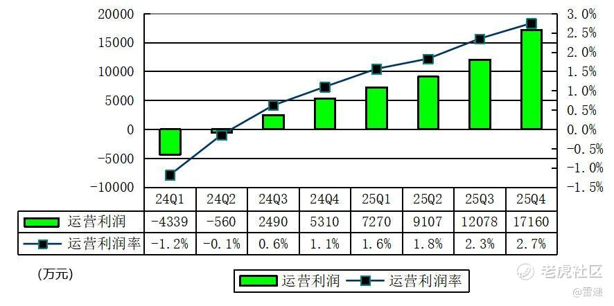 万物新生2025年第四季运营利润为1.71亿元(约2455万美元),较上年同期的5310万元增长223%;万物新生2025年第四季度运营利润率为2.7%。