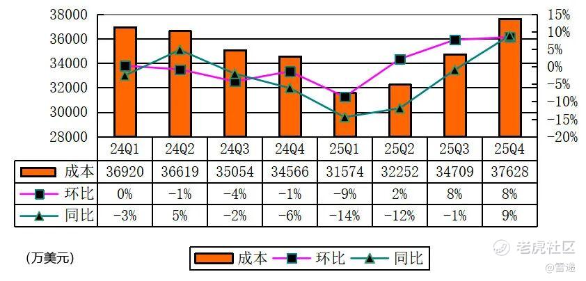 欢聚集团2025年第四季度毛利润为2.056亿美元,2024年同期为2.038亿美元,2025年第三季度为1.931亿美元。欢聚集团2025年第四季度毛利率为35.3%,而2024年同期为37.1%,2025年第三季度为35.8%。