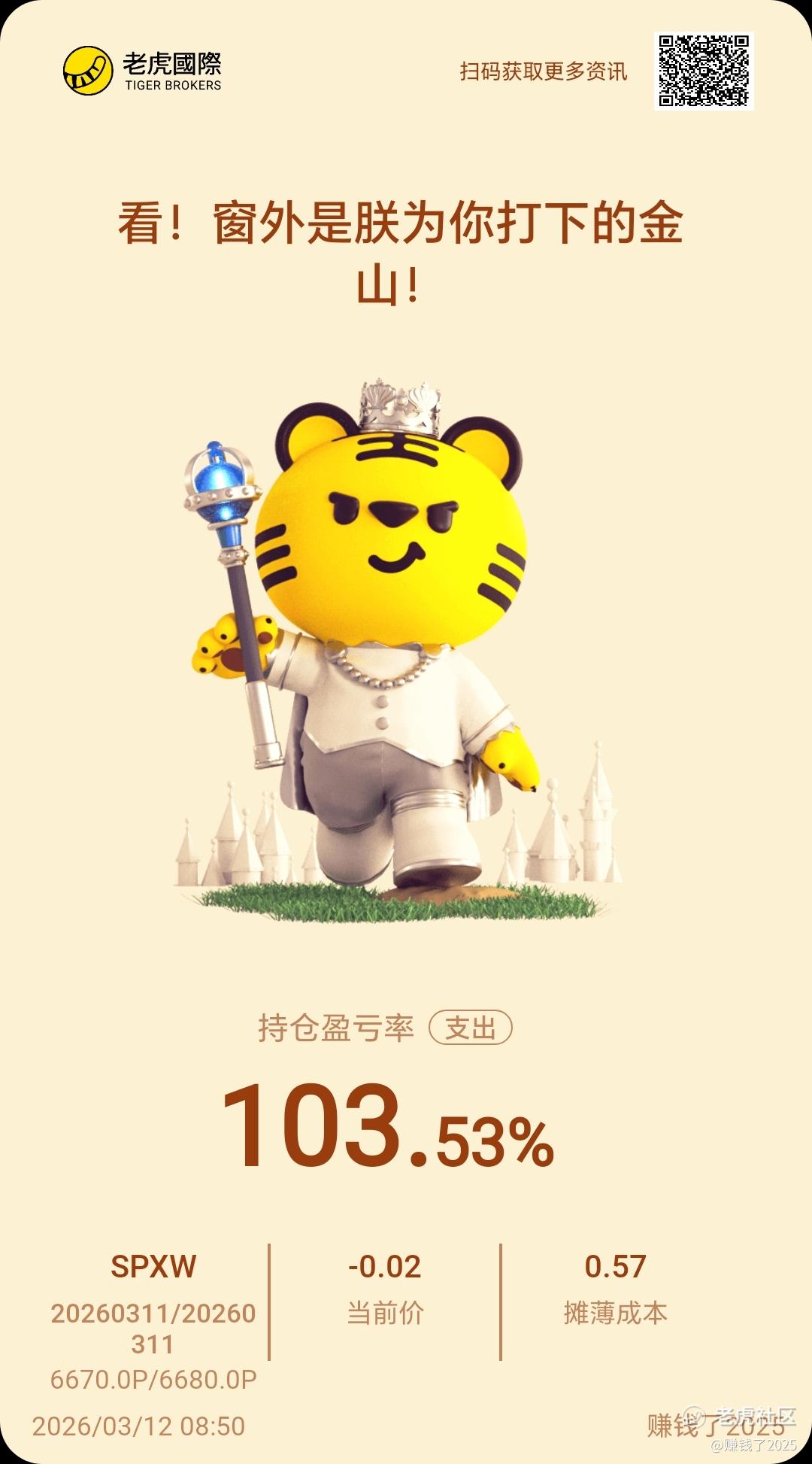 $标普500 垂直价差 260311 PUT 6670.0/PUT 6680.0$ 感觉这两天捡破烂也不好捡了,波动小了,但实际暗流涌动,盘在那里反而不敢动了,战争还没有结束,甚至八字还没一撇,标普易跌难涨,这个地方如果强突破上去那是要创新高的,可现在的局面完全不支持创新高,但你说大跌也跌不到哪里去,毕竟美国说停,的确能比较快的停下来,这跟俄乌战争还是有很大区别。