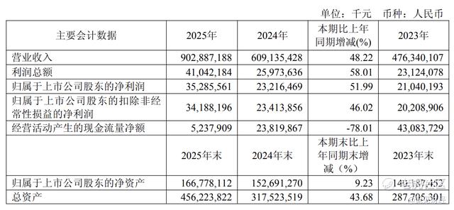 3月10日晚,工业富联 $工业富联(601138)$ 公布2025年业绩。财报显示,2025年公司实现营收9028.87亿元,同比增长48.22%;实现净利润352.86亿元,同比增长51.98%;扣非净利润341.88亿元,同比增长46.02%。