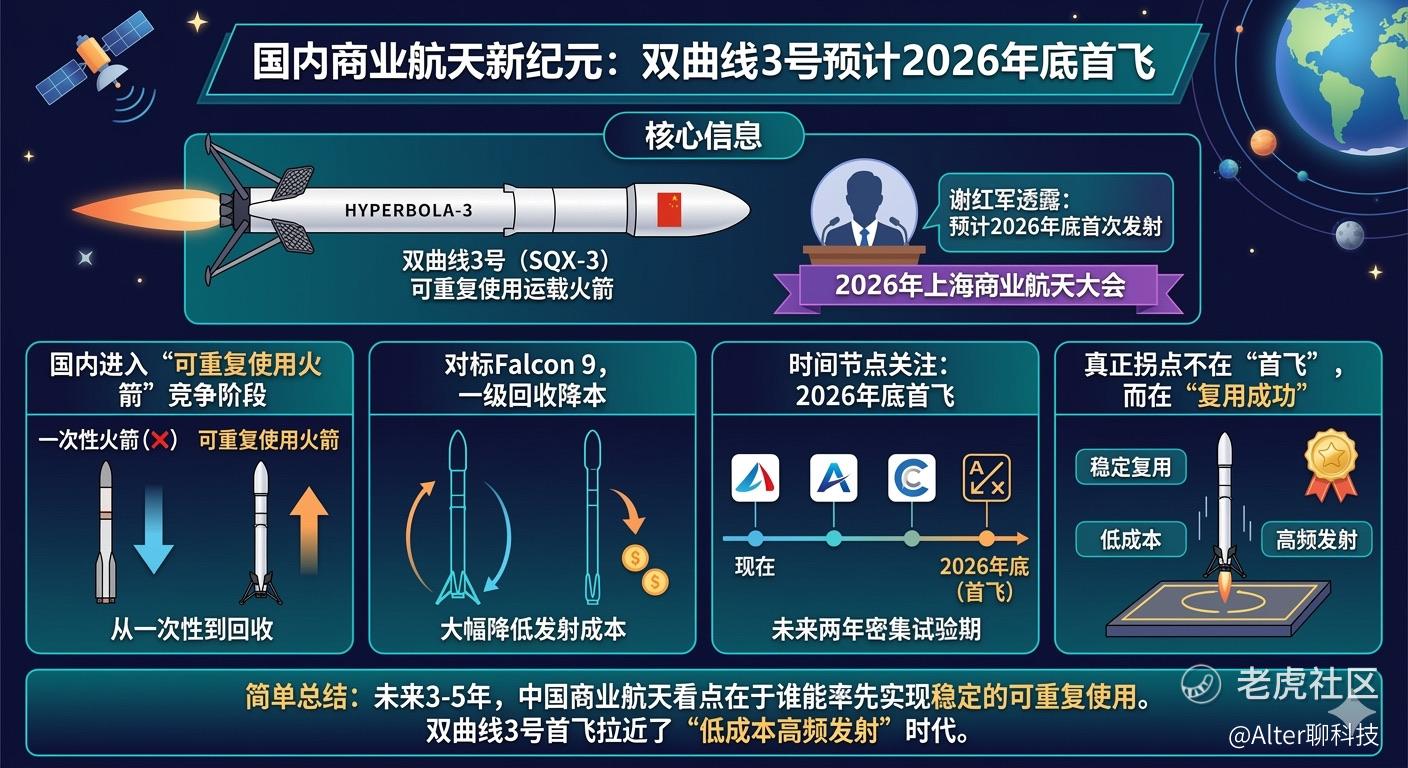 如果双曲线3号按计划在2026年底首飞,中国商业航天距离“低成本高频发射”的时代可能又近了一步。$航天科技(000901)$