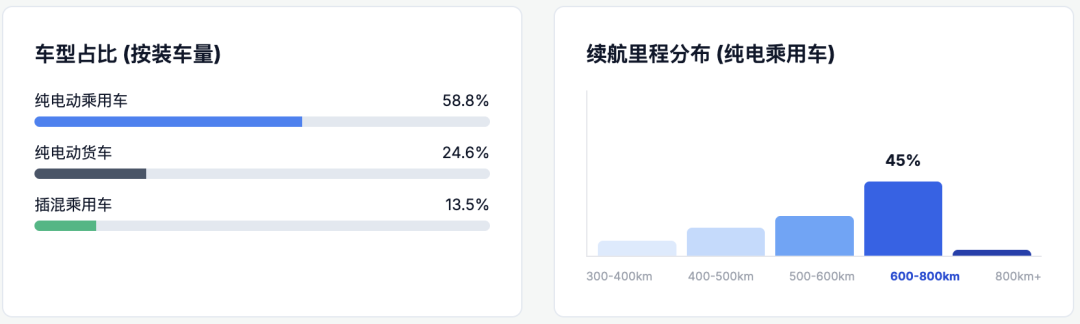 ◎ 600-800公里续航车型占比45.0%,已经是市场主流区间;