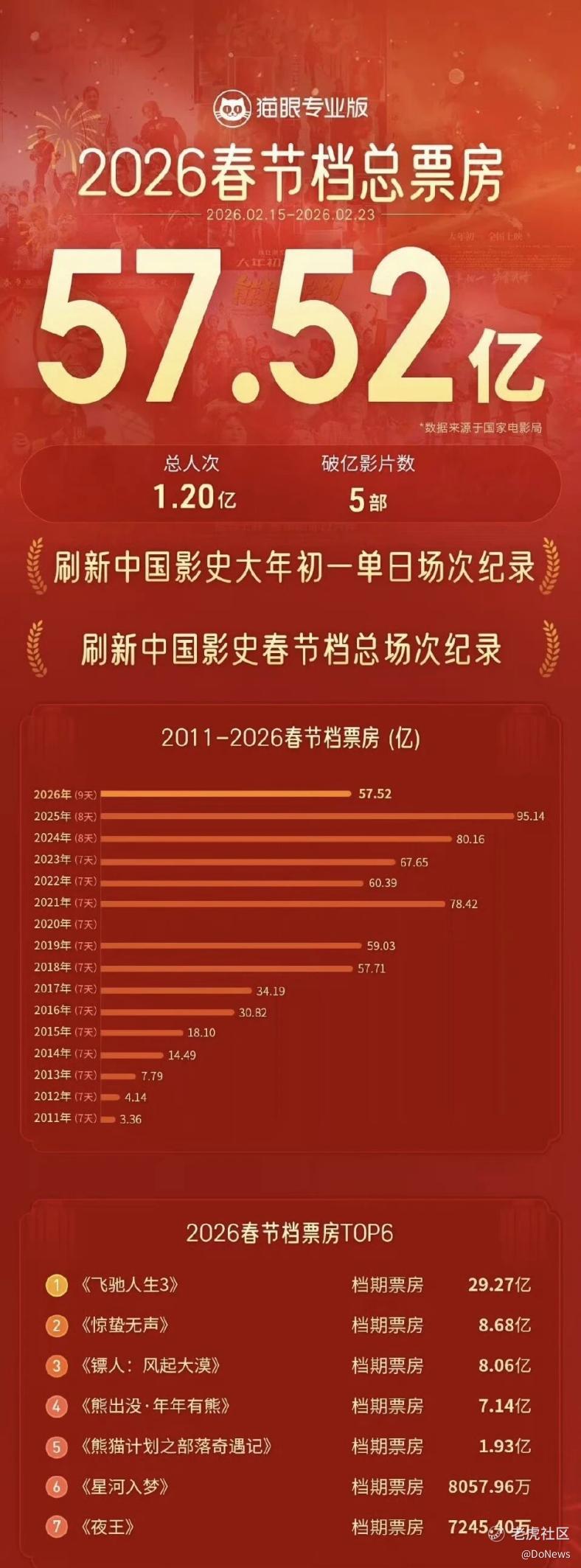 影院端的数据更加魔幻。总场次435万场,刷新中国影史春节档纪录,银幕总数在2025年底已冲到93,187块——供给侧开足马力,但需求侧却在集体逃离,这是典型的“我很努力,但你不买账”。