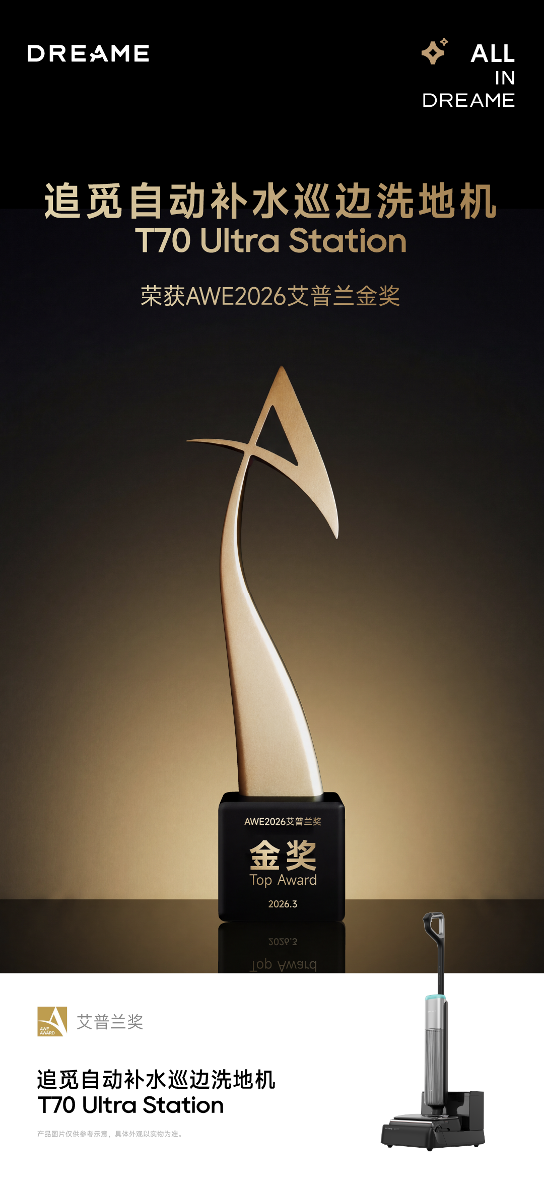 不到两年时间,机械臂洗地机这一新赛道已迅速成形。凭借持续的技术迭代,追觅在AWE 2026正式发布机械臂3.0产品T70 Ultra Station,并斩获代表行业最高技术认可的艾普兰金奖;与此同时,追觅机械臂洗地机累计销量突破一百万台,稳居全球销量第一。