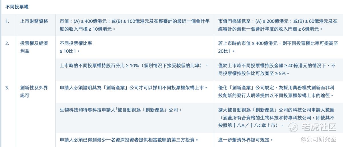 与此同时,如果公司上市时市值达到400亿港元,WVR投票权比例上限可从10比1放宽到20比1;在特定条件下,WVR持股的最低经济利益要求也可由10%放宽到5%,前提是持股金额至少达到40亿港元。