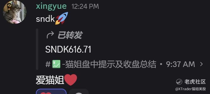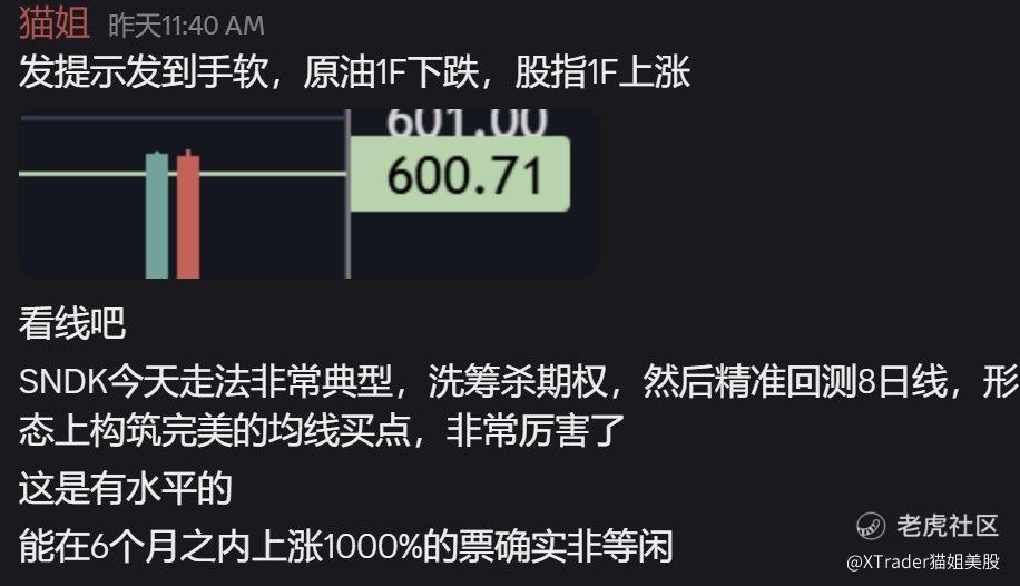 昨天表扬 $SNDK 图形非常有水平,其走法属于洗筹+杀期权,形态上却体现为精准回测8日线,技术上构筑完美的均线买点,非常厉害了。毕竟是六个月内上涨1000%的票,实力非同小可。周五盘中上涨6.49%