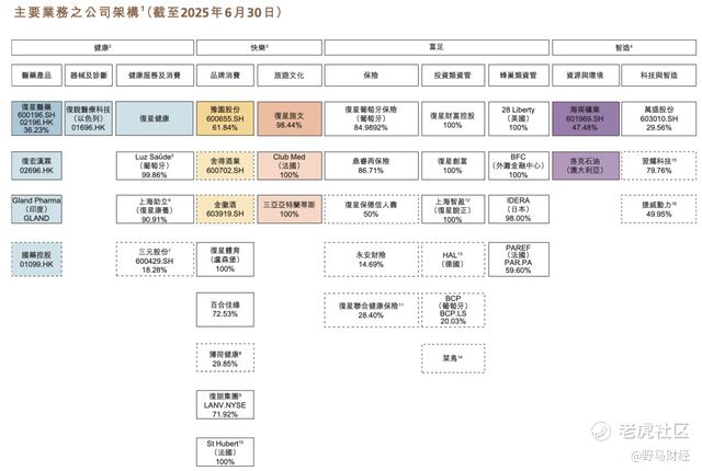 虽然“复星系”上市公司依然不少,但集团73%的收入来自四大核心子公司——复星医药、豫园股份、复星葡萄牙保险、复星旅文,2025年上半年总收入达人民币636.1亿元。