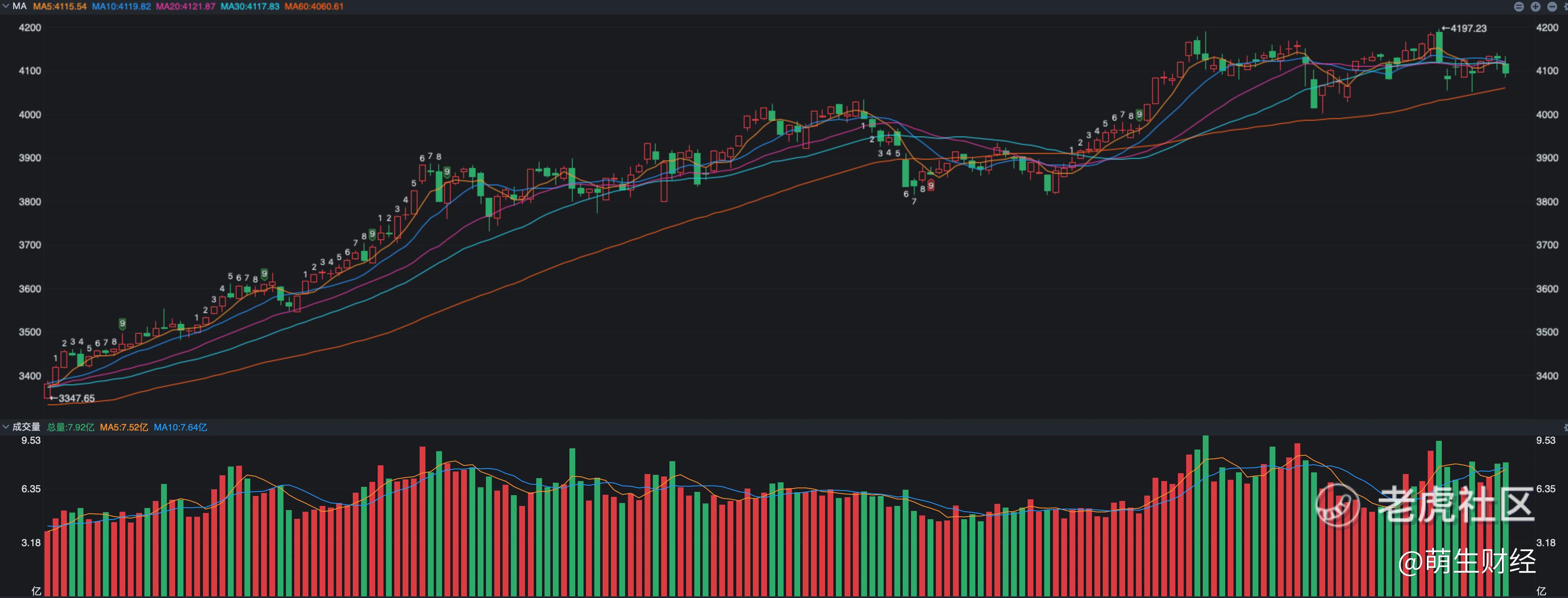 对于下周而言,60日线的位置在4060点,看看会不会被击穿,这将是多空新的分水岭。