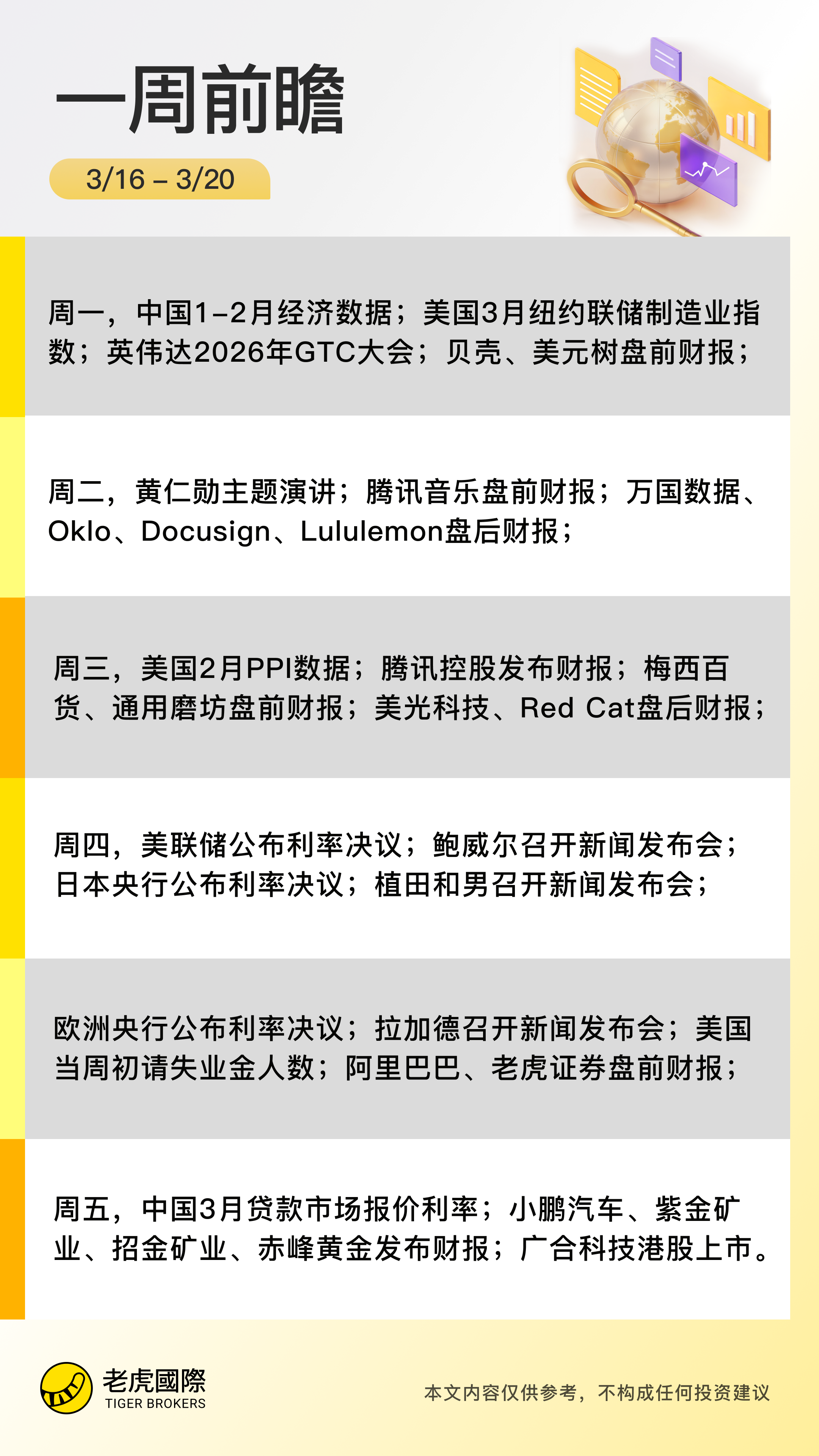 3月16日-3月20日当周重磅财经事件一览: