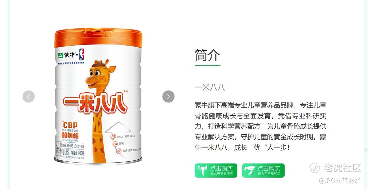 在蒙牛官网,有一个独立的“一米八八高端儿童营养品牌”板块。