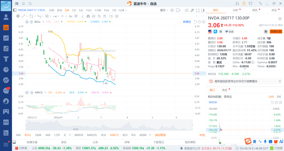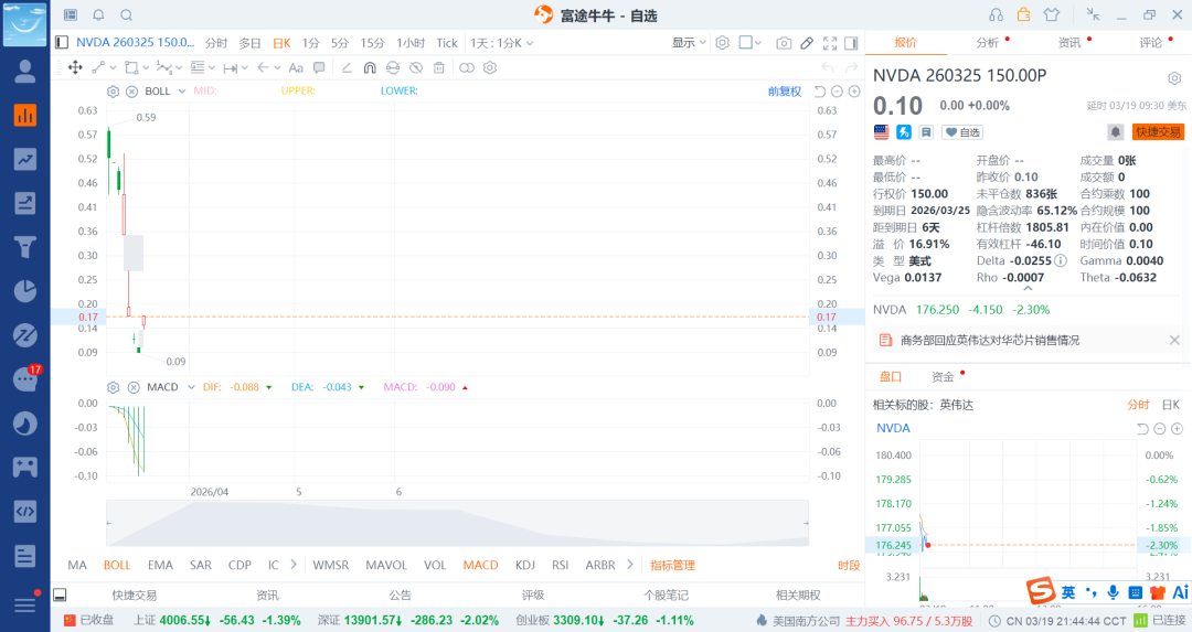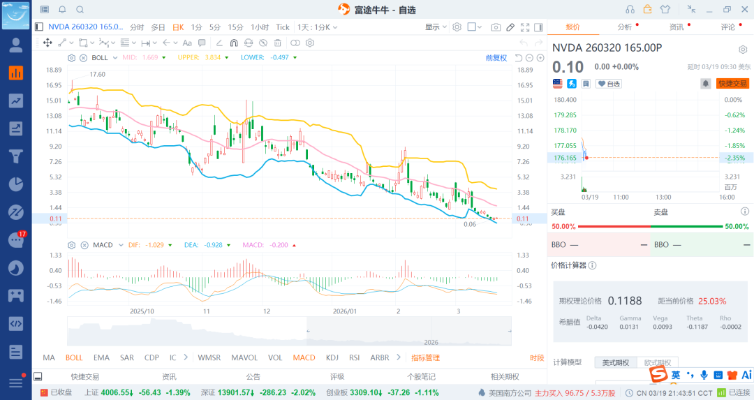 这个时候采用认沽期权来做就行了,尤其是短期的期权,中长期的之前大部分布局了,当然也可以稍微减点了,重点在完犊子的短期权了,看呢不能捕捉到大鱼了。
