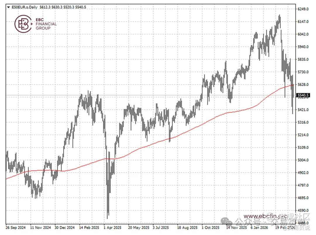 尽管市场出现波动性反弹,由于特朗普下一步行动存在不确定性,斯托克50指数仍在200日均线下方。在短期内,该指数很可能回落至5500点水平。