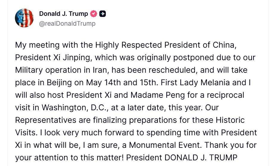 接下来,最坏的剧本,油价飙到200,股市再迎大利空(彭博社今天发了一个新闻,称特朗普正在评估油价若飙升至200美元, 对经济会有什么影响,要为长期冲突做准备),不过今早Cabinet Meeting中最后也表示油价肯定会回到之前的水平。最好的剧本,消息称美国已经确定5月14日到15日,特朗普将来到中国访问,冲突最激烈的阶段或许接近了(意味着接近结束了)。