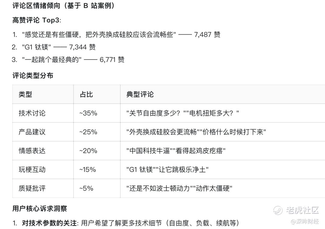 它不仅统计了高赞评论,还分析了评论类型分布,最后给出了“用户核心诉求洞察”,这些信息对于内容创作者来说,价值不亚于一份完整的市场调研。