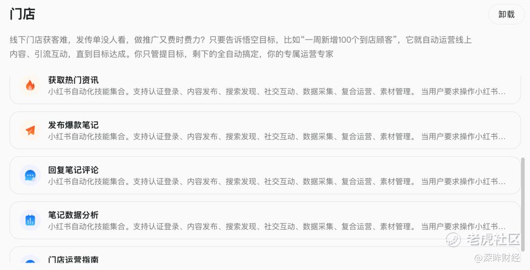 在理解了“原来人类发一个爆款帖子是这样的”之后,调用自动发帖技能,自己打开小红书、抖音等社交媒体,发帖、写评论。如果有客户留言,它会像人类客服一样回答疑问,并细心地将意向引导到门店。